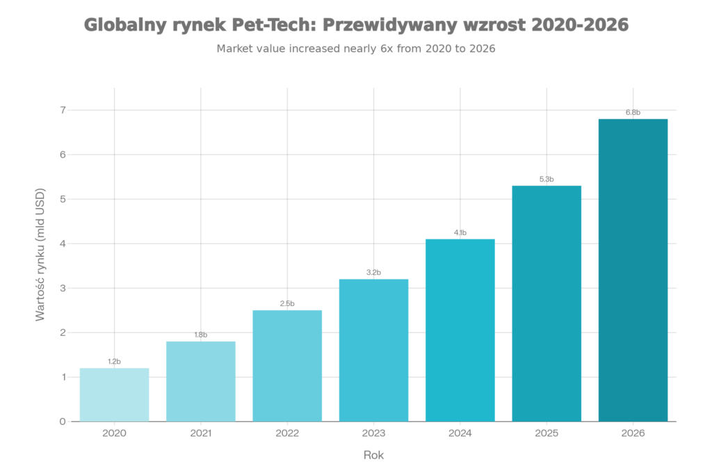 Branża pet-tech (technologia dla zwierząt) przeżywa eksplozję wzrostu w 2025 roku. Globalny rynek technologii dla zwierząt wyceniany jest na ponad 5 miliardów dolarów i szybko się rozwija. Właściciele psów, szczególnie z pokolenia Millenialsów i Gen Z (68-69% tej grupy traktuje zwierzęta jak członków rodziny), aktywnie szukają innowacyjnych rozwiązań. Nowoczesne technologie nie tylko usprawniają codzienną opiekę, ale również dają poczucie bezpieczeństwa i mogą wydłużyć życie naszych pupili. To jest trend, który już się zakorzeniał, a teraz wchodzi w główny nurt.